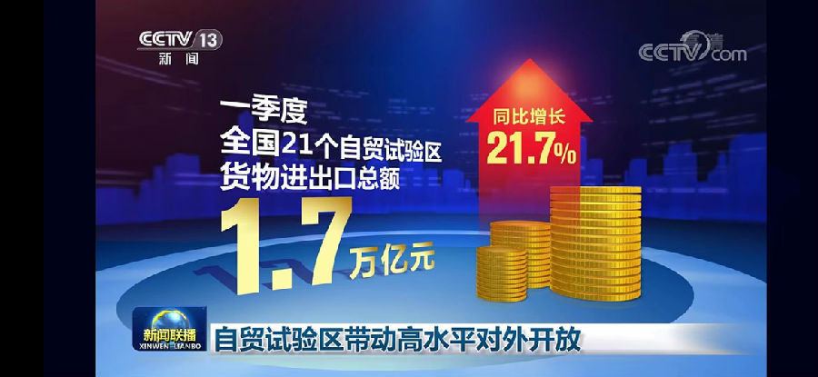 一季度,全国21个自贸试验区货物进出口总额1.7万亿元,同比增长21.7%;实际使用外资568.9亿元,同比增长43.5%,增速较全国高出17.9个百分点。