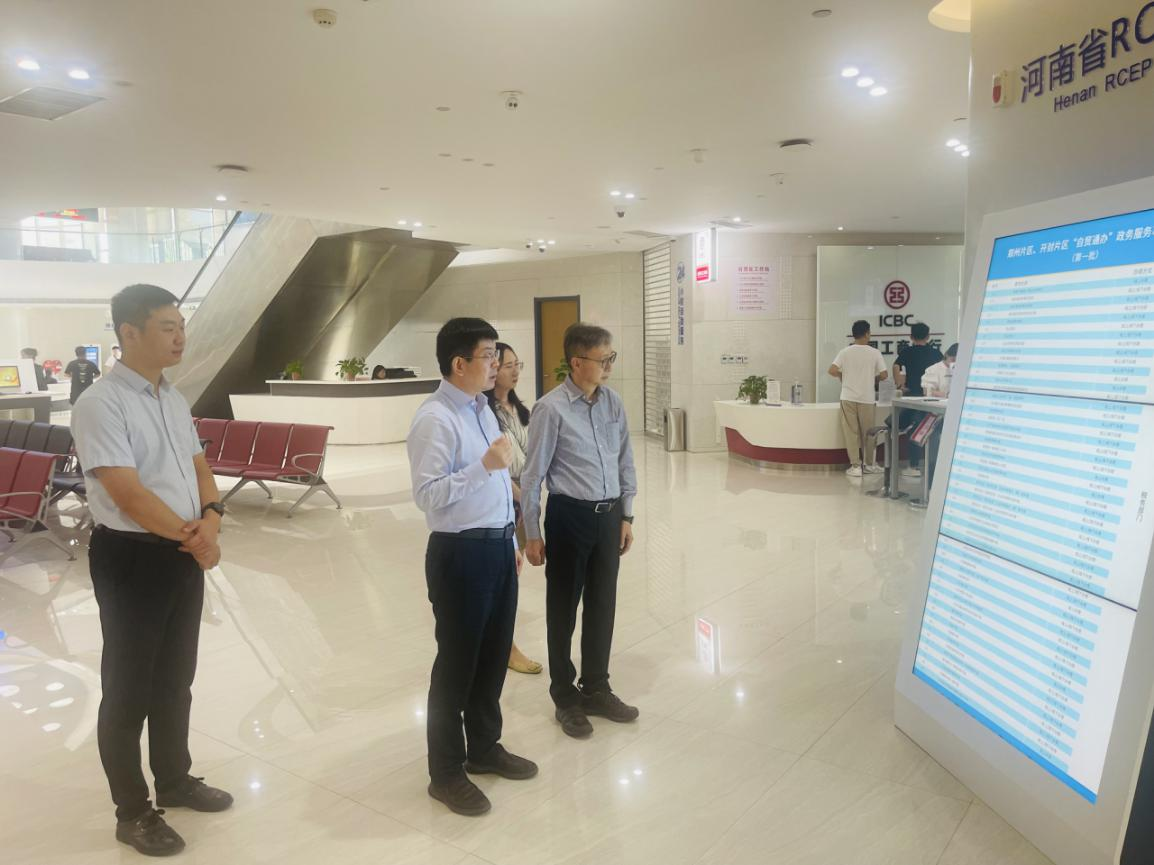 2023年8月14日下午,香港特别行政区政府驻武汉办驻河南联络处主任徐联平一行调研自贸区郑州片区。调研组一行首先在综合服务中心考察移民事务服务中心、市场监管、RCEP企业服务中心窗口,参观展示中心,并在管委会16楼第一会议室进行座谈交流。